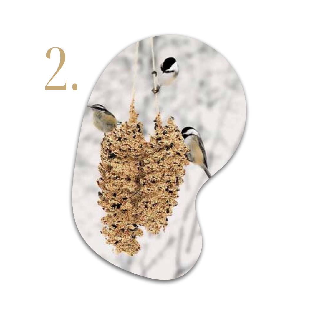 Pine cones are coated with premium bird seed, gathered by hand in the forests of Oregon, and may be re-coated with suet, peanut butter, and seed.